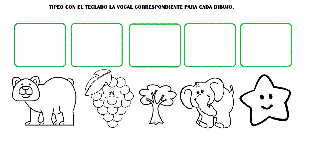 Escritura de la vocal por la que empiezan los diferentes objetos